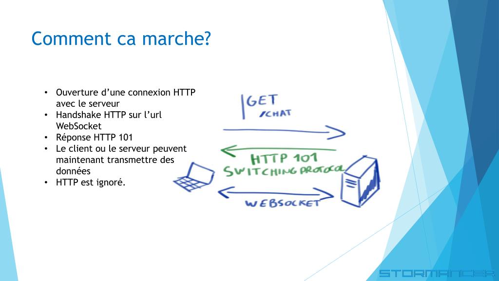 Jean-Michel Deruty CEO Stormancer. Jean-Noel Gourdol CTO Stormancer. WebSocket , kezako ?. Nous connaissons tous HTTP Interopérable LE standard de communication sur le Web Client serveur http:// et https://. Communication bidirectionnelle Temps réelle Aux cotés d’HTTP