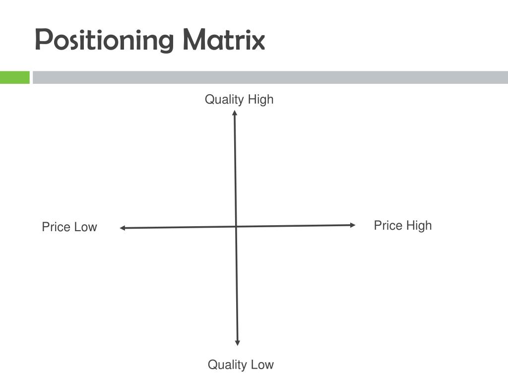 Positioning Matrix Quality High Price High Price Low Quality Low