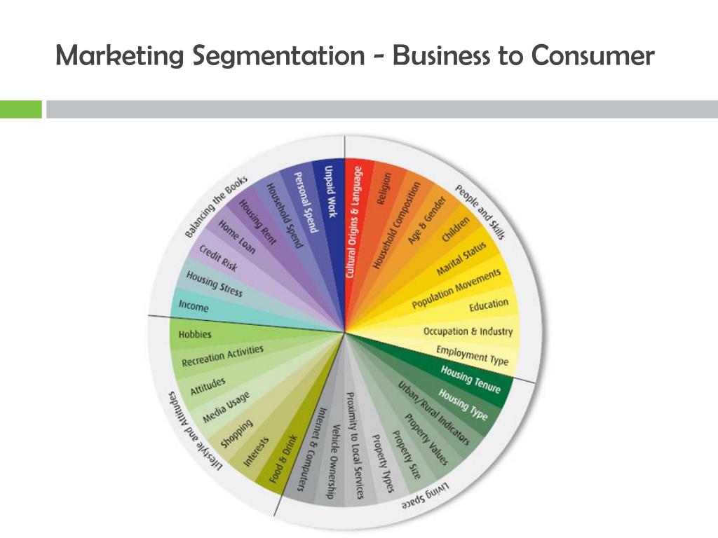Marketing Segmentation – Business to Business • Industry sector (SIC codes) • Geographical location • Turnover • No of employees • Type of decision making unit • Level of product / service usage