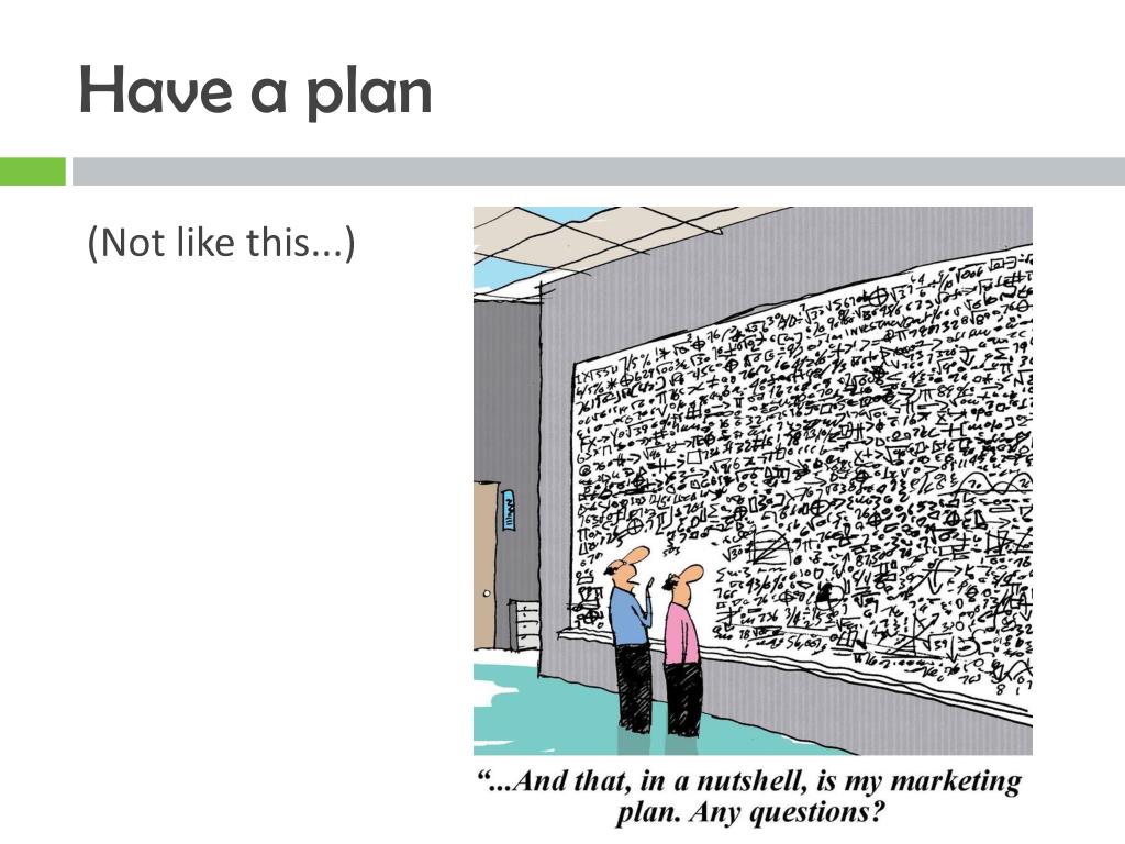 Set measurable objectives. Know your goals. Be realistic but aim high.