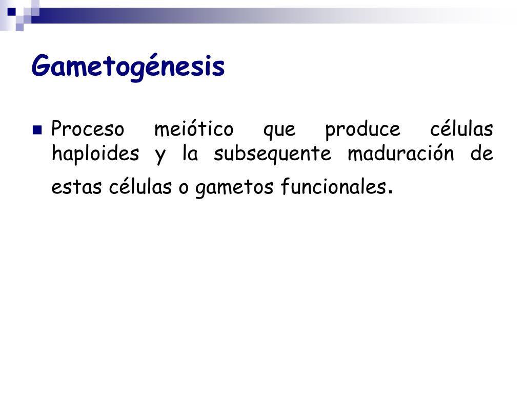 Gametogénesis • Proceso meiótico que produce células haploides y la subsequente maduración de estas células o gametos funcionales.