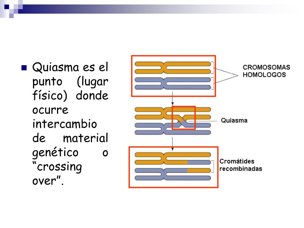 Quiasma es el punto (lugar físico) donde ocurre intercambio de material genético o “crossing over”.