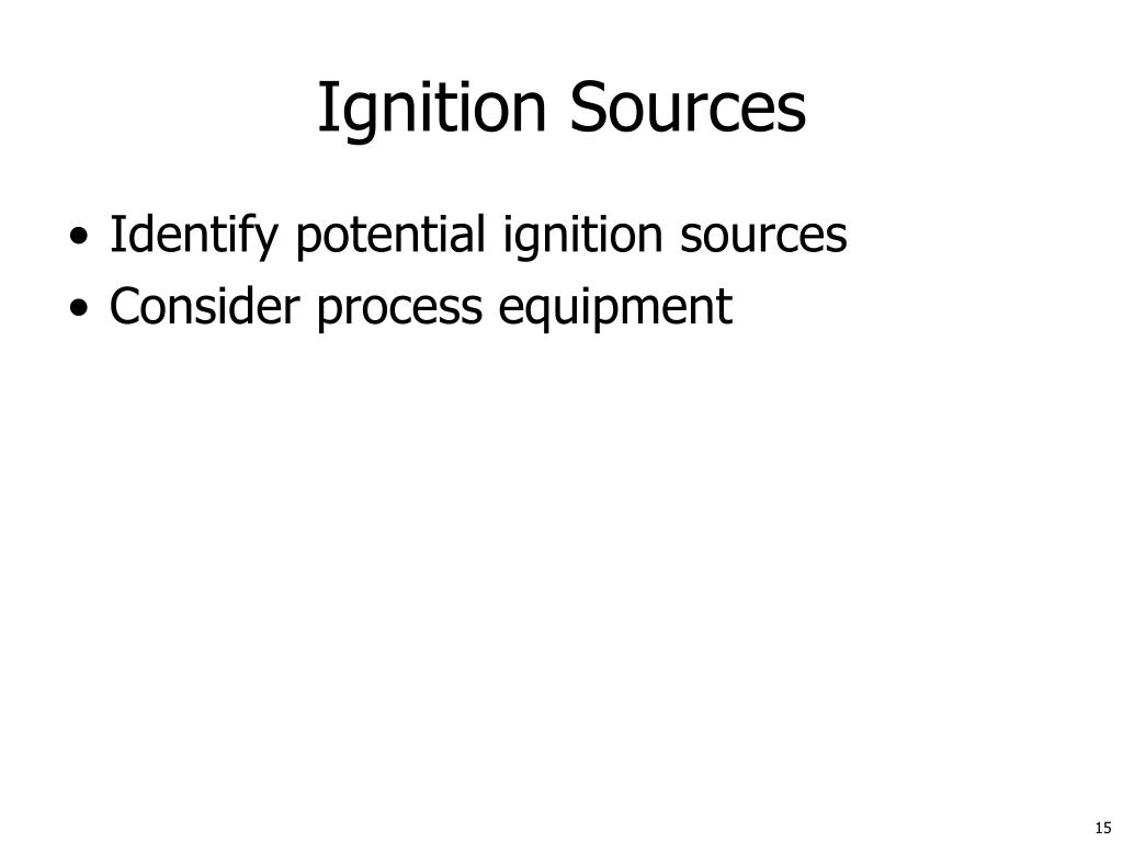 Ignition Sources • Identify potential ignition sources • Consider process equipment