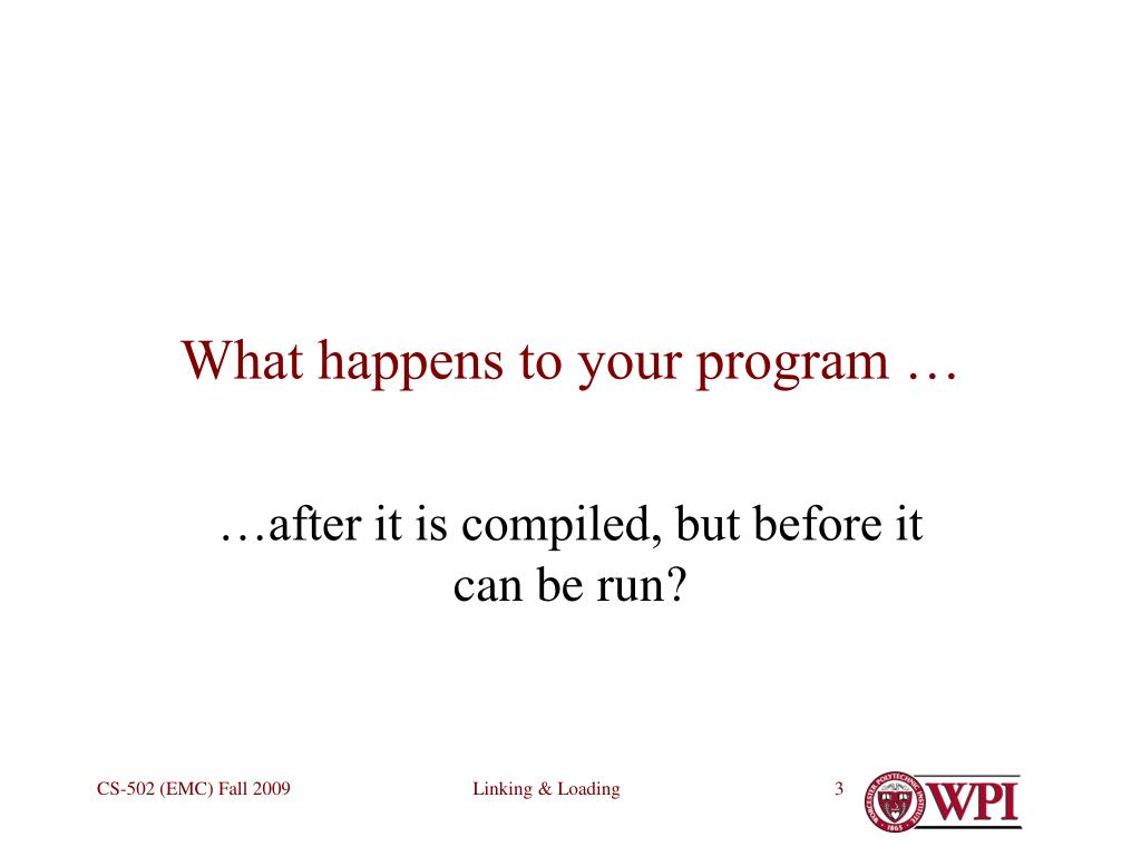 What happens to your program … …after it is compiled, but before it can be run? Linking & Loading