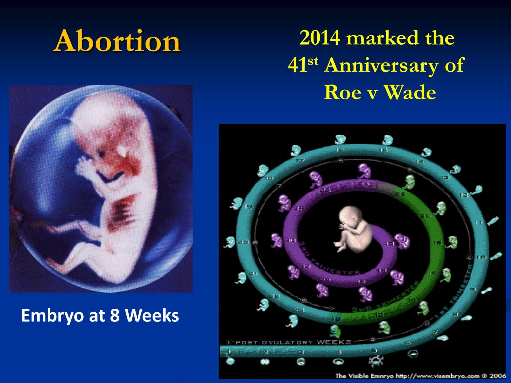 Abortion 2014 marked the 41st Anniversary of Roe v Wade Embryo at 8 Weeks