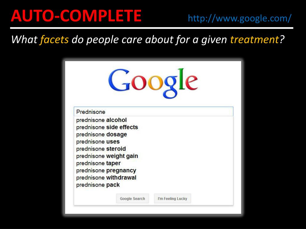 AUTO-COMPLETEhttp://www.google.com/ What facets do people care about for a given treatment?
