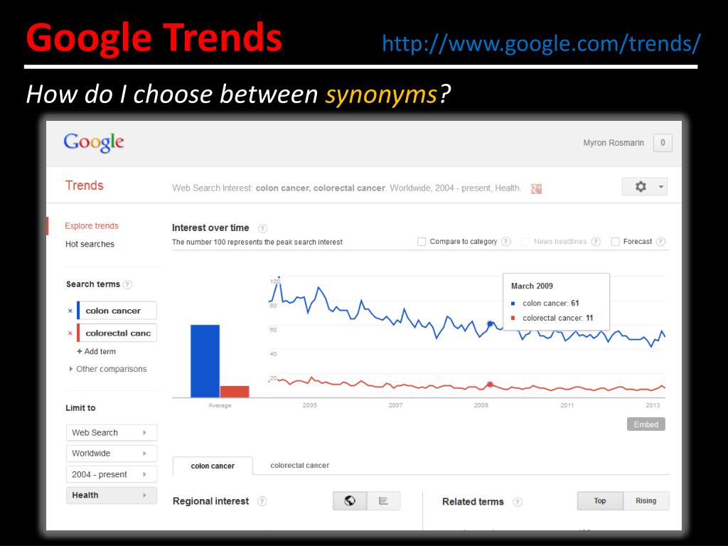 Google Trends http://www.google.com/trends/ How do I choose between synonyms?