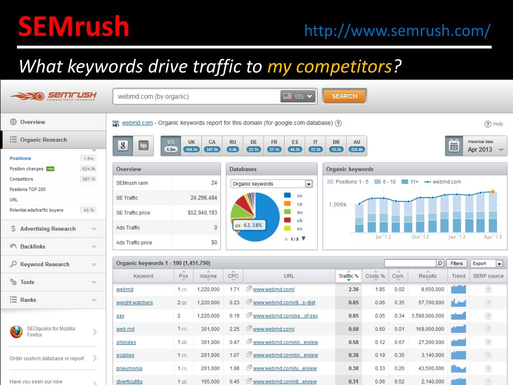 SEMrushhttp://www.semrush.com/ What keywords drive traffic to my competitors?