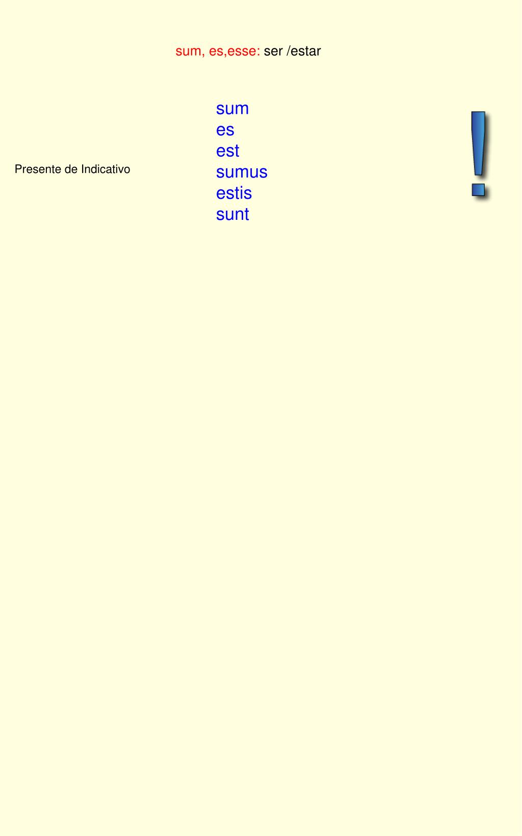 sum, es,esse: ser /estar sum es est sumus estis sunt Presente de Indicativo