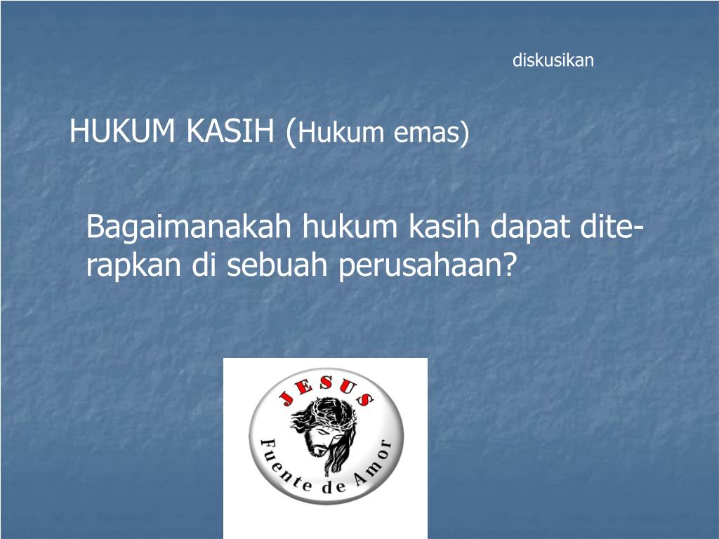 diskusikan HUKUM KASIH (Hukum emas) Bagaimanakah hukum kasih dapat dite- rapkan di sebuah perusahaan?