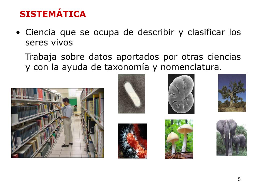 SISTEMÁTICA • Ciencia que se ocupa de describir y clasificar los seres vivos Trabaja sobre datos aportados por otras ciencias y con la ayuda de taxonomía y nomenclatura.