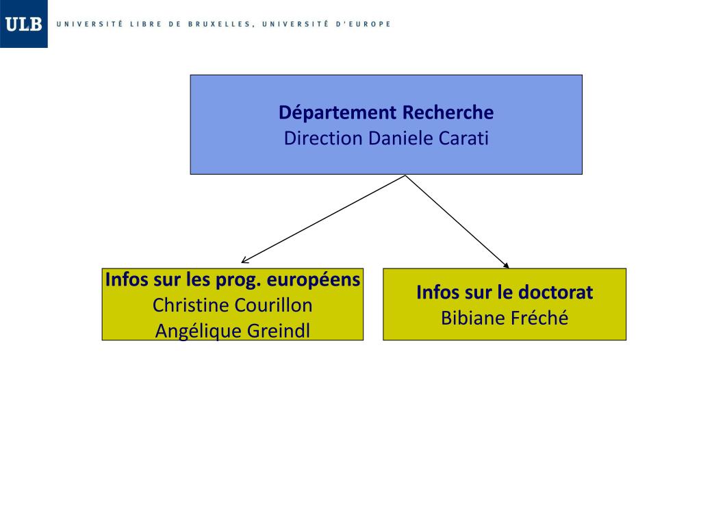Département Recherche Direction Daniele Carati Infos sur les prog. européens Christine Courillon Angélique Greindl Infos sur le doctorat Bibiane Fréché