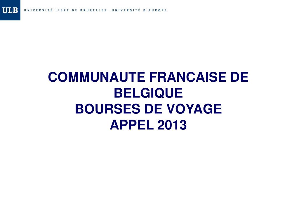 COMMUNAUTE FRANCAISE DE BELGIQUE BOURSES DE VOYAGE APPEL 2013