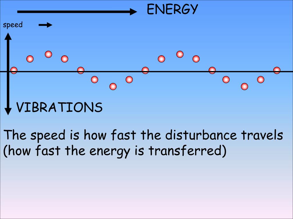 ENERGY speed VIBRATIONS The speed is how fast the disturbance travels (how fast the energy is transferred)