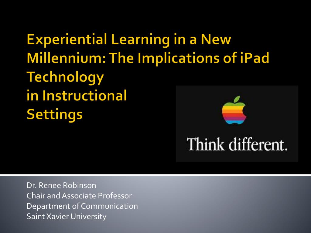 Experiential Learning in a New Millennium: The Implications of iPad Technologyin Instructional Settings Dr. Renee Robinson Chair and Associate Professor Department of Communication Saint Xavier University
