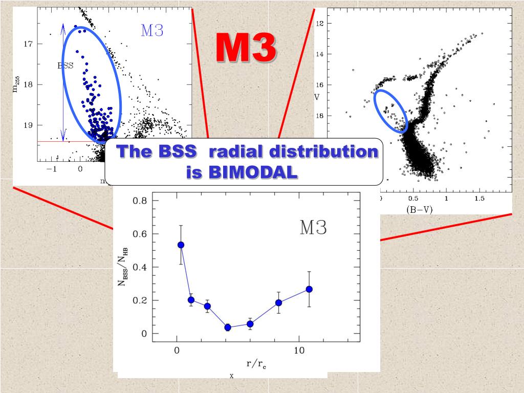 BSS radial distributions Radius of avoidance Radius at which all objects with a mass similar to BSS have been sunk into the core in a time comparable to the cluster age Important signatures of the dynamical evolution of the parent cluster is imprinted in the BSS properties