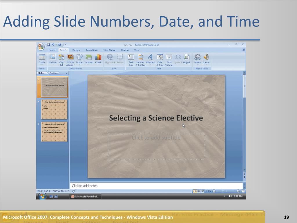 Adding Slide Numbers, Date, and Time Microsoft Office 2007: Complete Concepts and Techniques - Windows Vista Edition