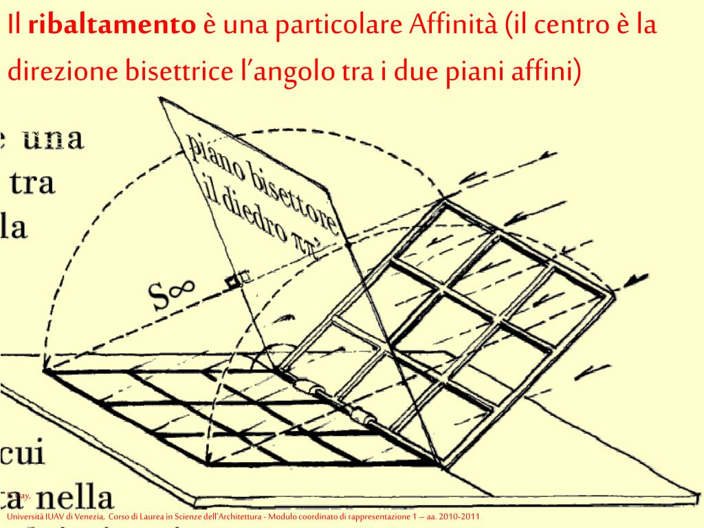 Il ribaltamento è una particolare Affinità (il centro è la direzione bisettrice l’angolo tra i due piani affini)