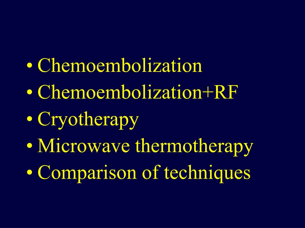 Chemoembolization • Chemoembolization+RF • Cryotherapy • Microwave thermotherapy • Comparison of techniques