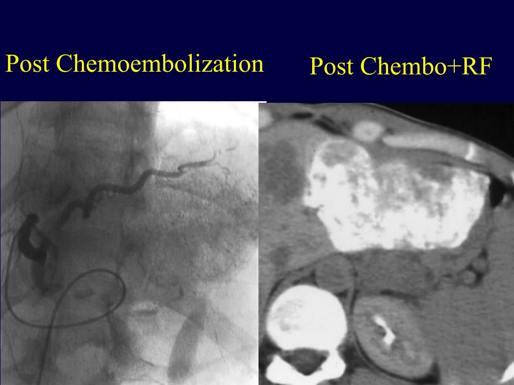 RF ablation+chemoembolization:Rationale • Embo increases size, rounder • Deposits chemo in tumor, EDGES! • RF increases dwell time of chemo • Need long term results