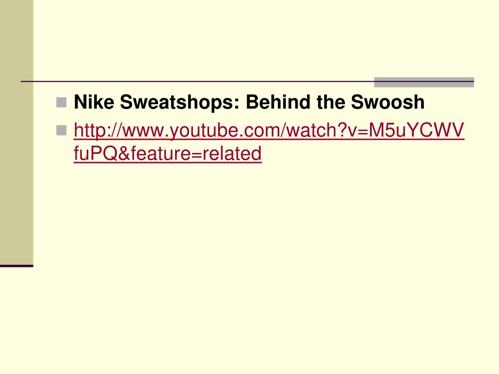 Nike Sweatshops: Behind the Swoosh • http://www.youtube.com/watch?v=M5uYCWVfuPQ&feature=related