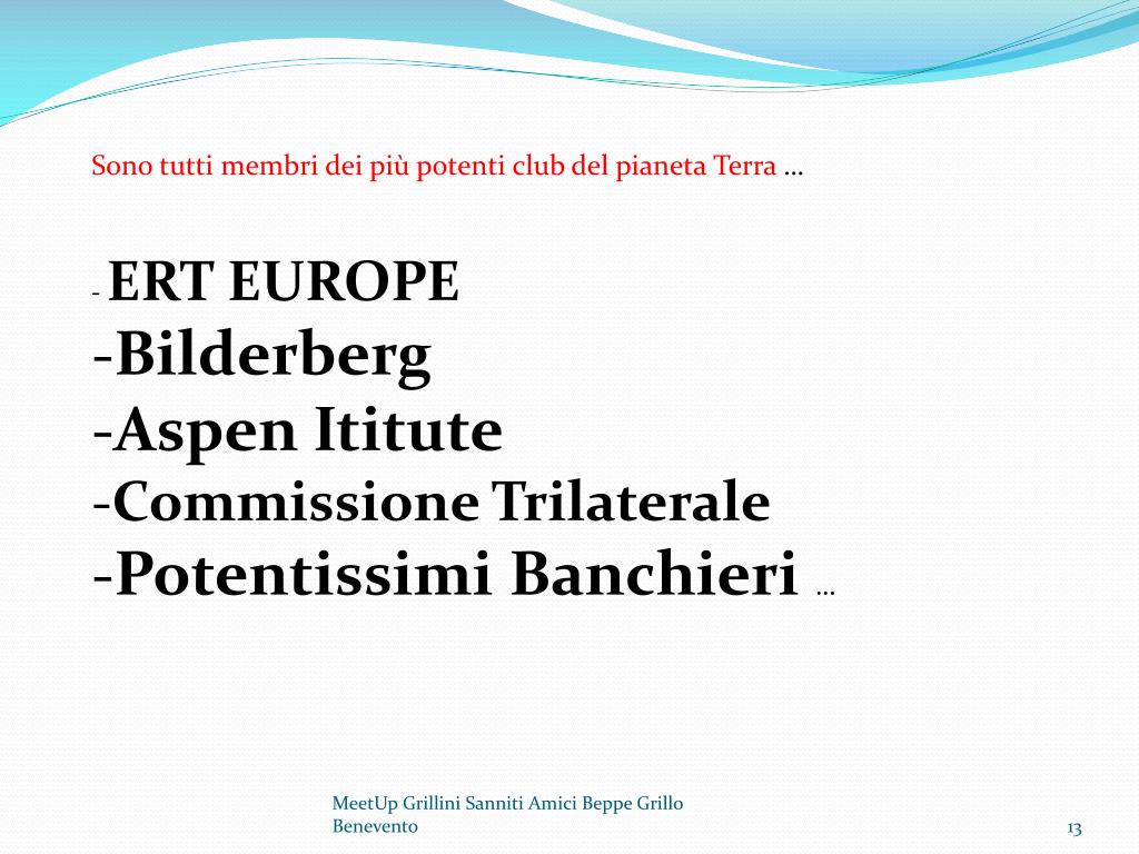 Sono tutti membri dei più potenti club del pianeta Terra … • - ERT EUROPE • Bilderberg • Aspen Ititute • Commissione Trilaterale • Potentissimi Banchieri … MeetUp Grillini Sanniti Amici Beppe Grillo Benevento