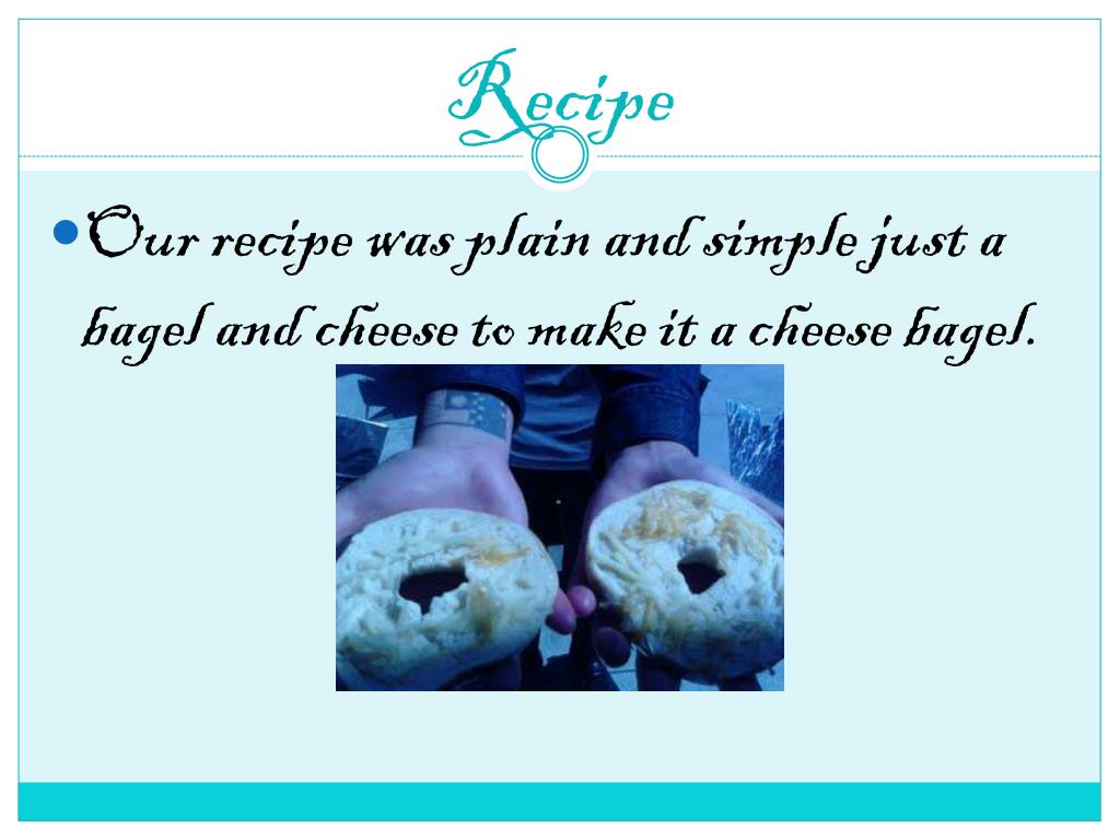 Recipe Ourrecipewasplain and simple just a bagel and cheesetomakeit a cheesebagel.