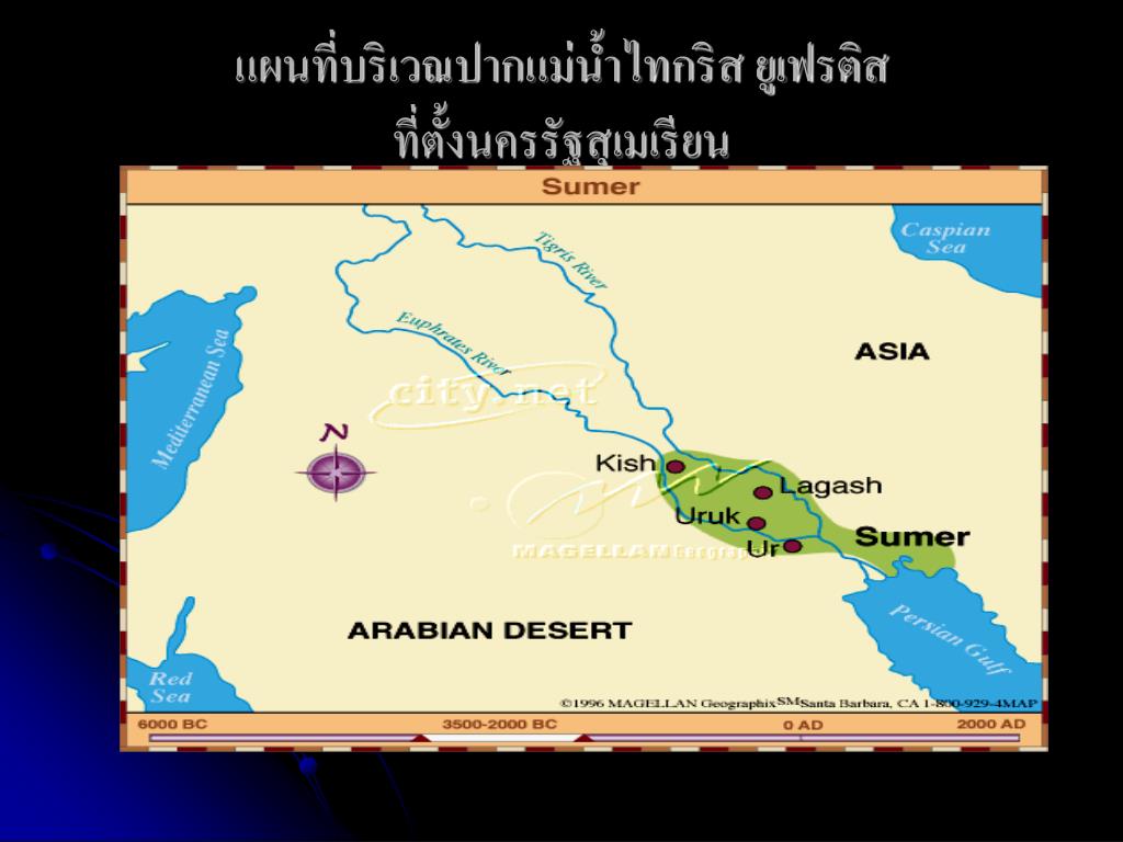 แผนที่บริเวณปากแม่น้ำไทกริส ยูเฟรติสที่ตั้งนครรัฐสุเมเรียน