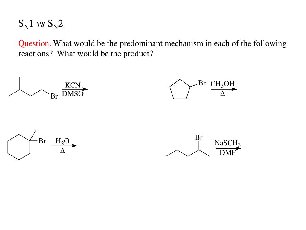 SN1 vs SN2 Question. What would be the predominant mechanism in each of the following reactions? What would be the product?