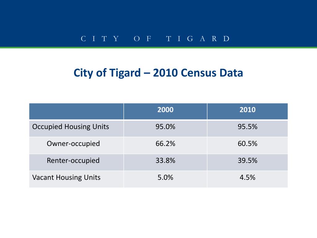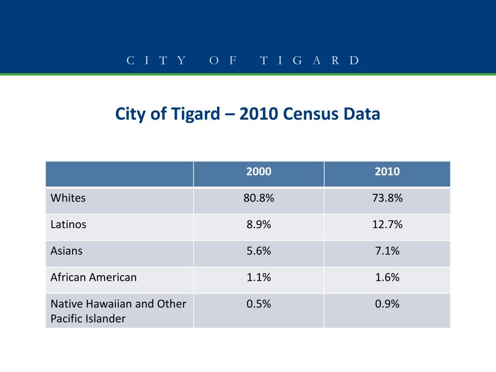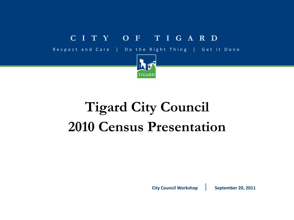Tigard City Council 2010 Census Presentation September 20, 2011 City Council Workshop