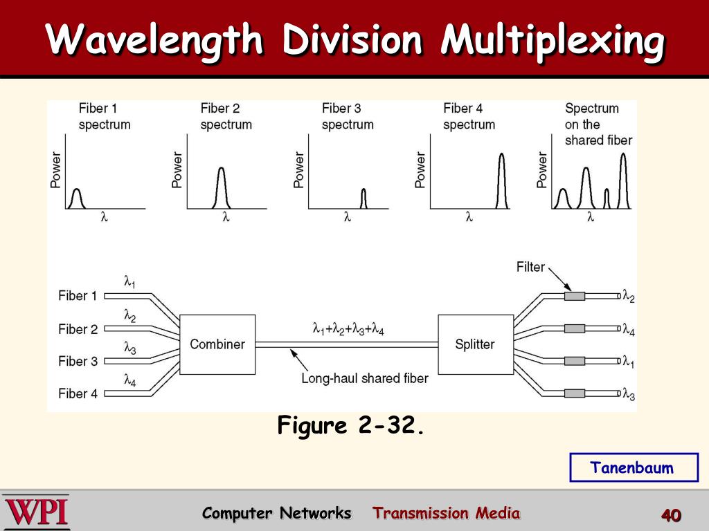 Wavelength Division Multiplexing Wavelength division multiplexing. Figure 2-32. Tanenbaum Computer Networks Transmission Media