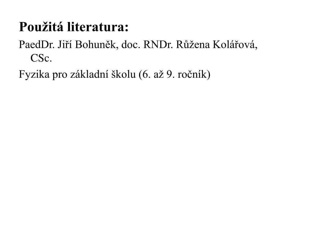 Použitá literatura: PaedDr. Jiří Bohuněk, doc. RNDr. Růžena Kolářová, CSc. Fyzika pro základní školu (6. až 9. ročník)