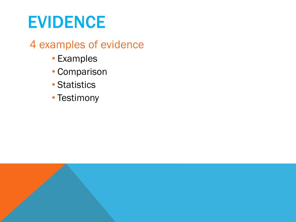 evidence • 4 examples of evidence • Examples • Comparison • Statistics • Testimony