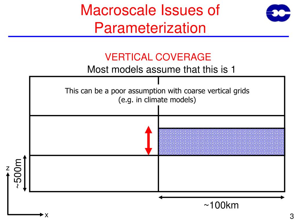 z ~500m ~100km x Macroscale Issues of Parameterization VERTICAL COVERAGE Most models assume that this is 1 This can be a poor assumption with coarse vertical grids (e.g. in climate models)