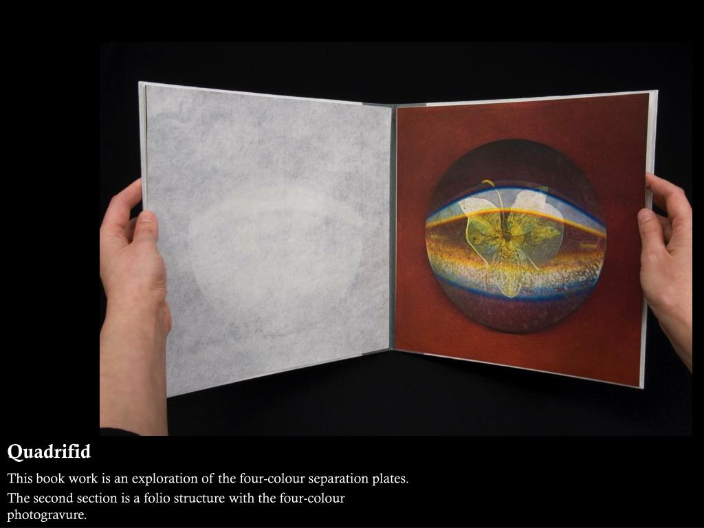 Quadrifid This book work is an exploration of the four-colour separation plates. The second section is a folio structure with the four-colour photogravure.