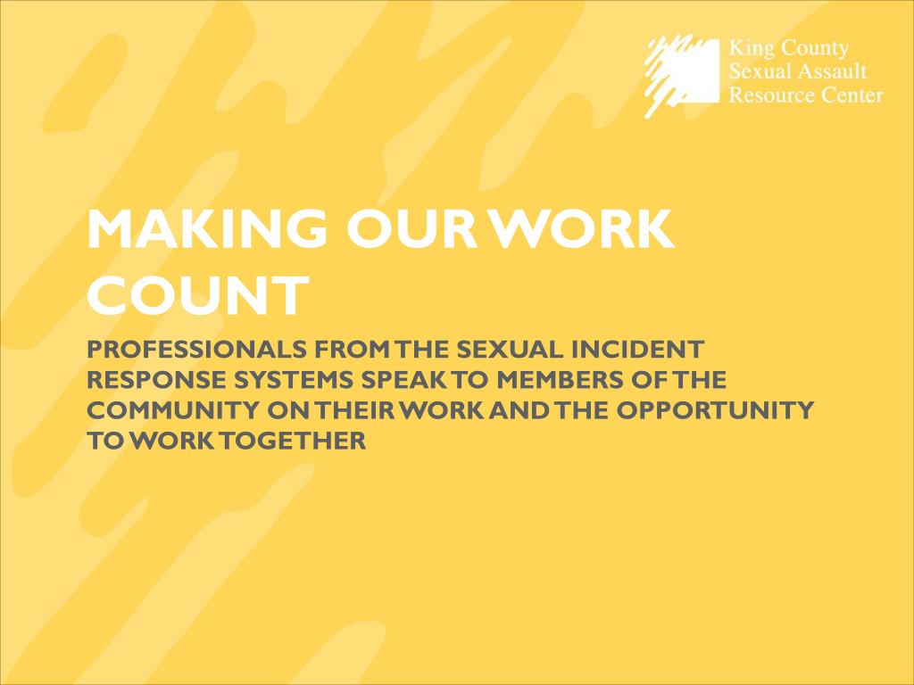 MAKING OUR WORK COUNT PROFESSIONALS FROM THE SEXUAL INCIDENT RESPONSE SYSTEMS SPEAK TO MEMBERS OF THE COMMUNITY ON THEIR WORK AND THE OPPORTUNITY TO WORK TOGETHER