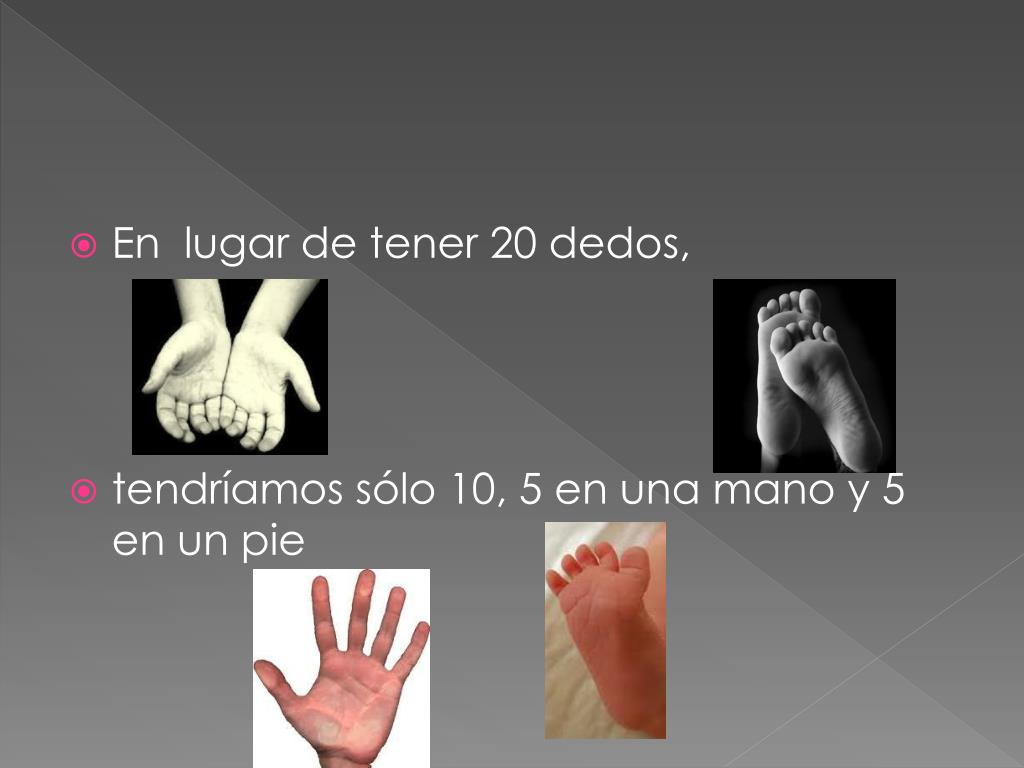 En lugar de tener 20 dedos, • tendríamos sólo 10, 5 en una mano y 5 en un pie