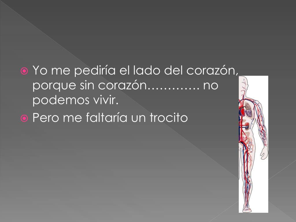 Yo me pediría el lado del corazón, porque sin corazón…………. no podemos vivir. • Pero me faltaría un trocito