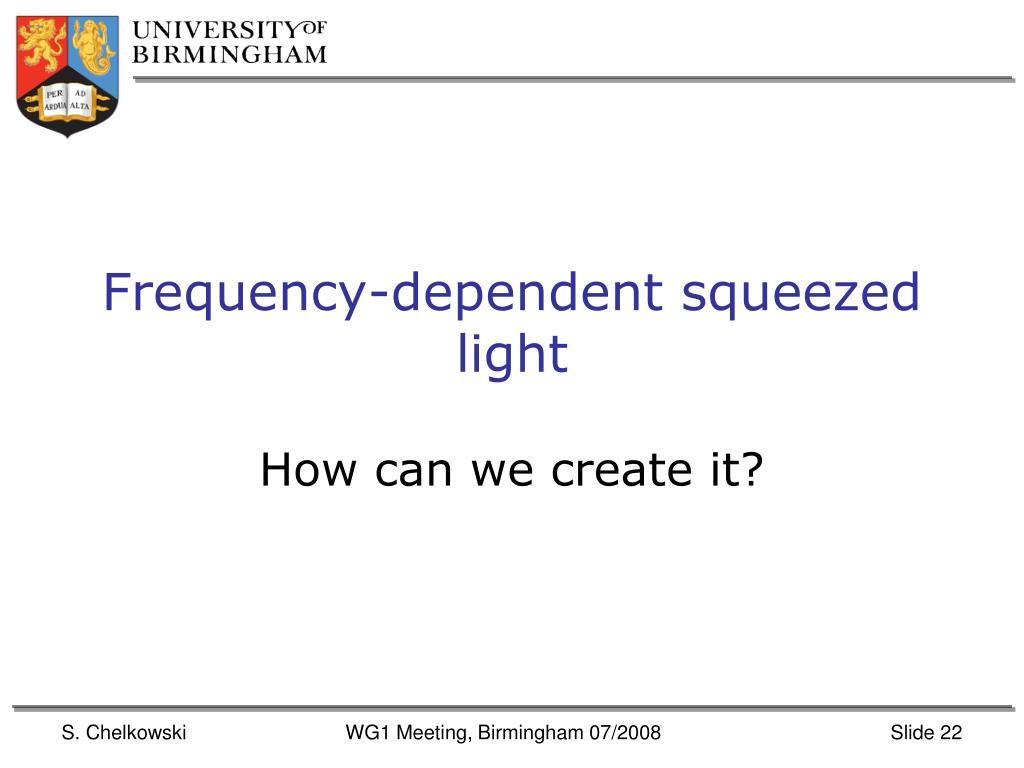 Frequency-dependent squeezed light How can we create it? WG1 Meeting, Birmingham 07/2008