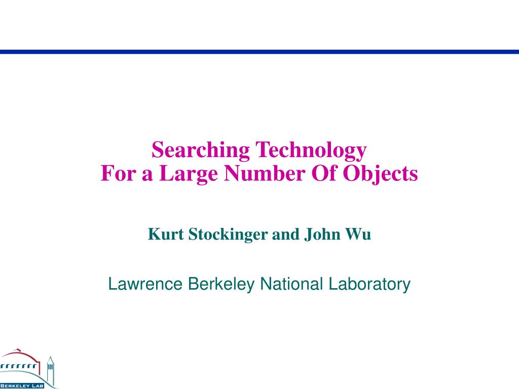 Searching TechnologyFor a Large Number Of Objects Kurt Stockinger and John Wu Lawrence Berkeley National Laboratory