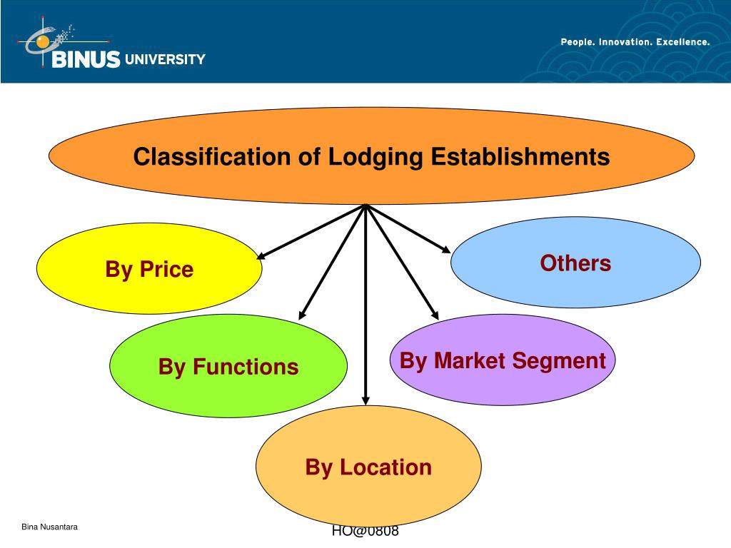Classification of Lodging Establishments Others By Price By Functions By Market Segment By Location HO@0808