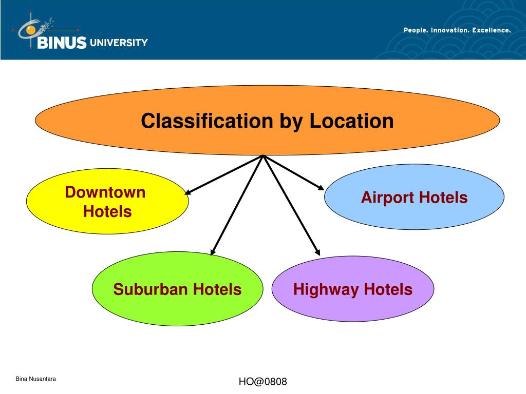 Classification by Location Airport Hotels Downtown Hotels Suburban Hotels Highway Hotels HO@0808