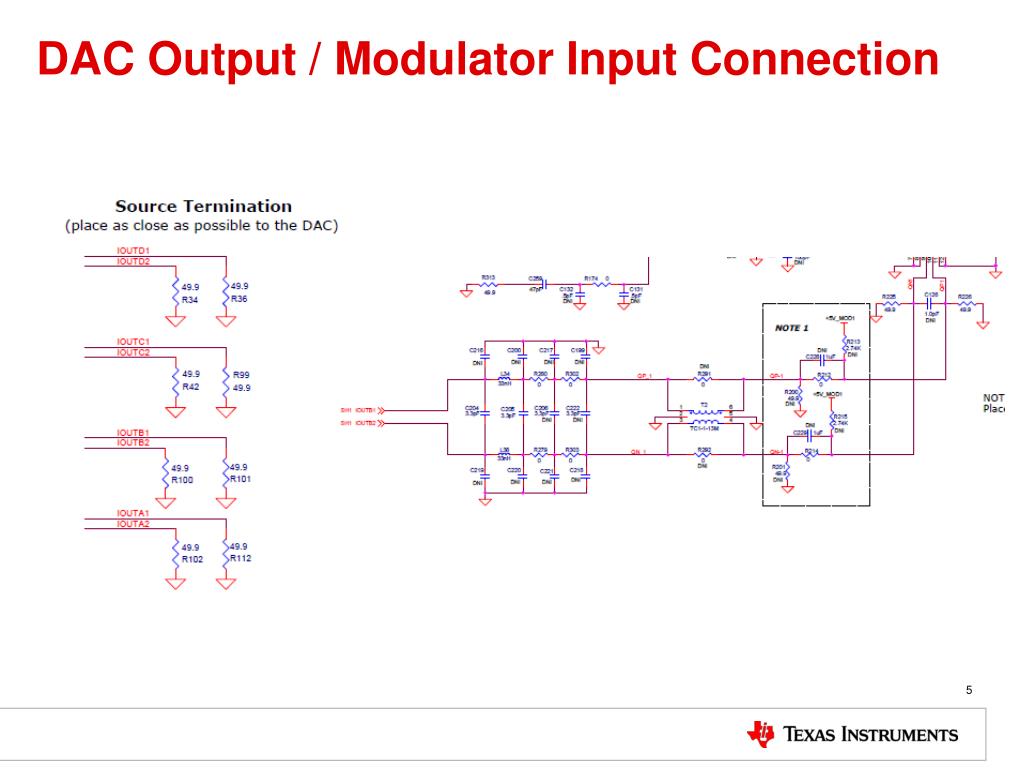 Gain Flatness Summary • Gain flatness tested on DAC34H84 + TRF3705 with 350MHz LPF in between the DAC and modulator. • Gain flatness of less than 1dB gain variation is observed. • Gain flatness of the DAC and modulator is primarily due to the matching of the impedance between the DAC and modulator