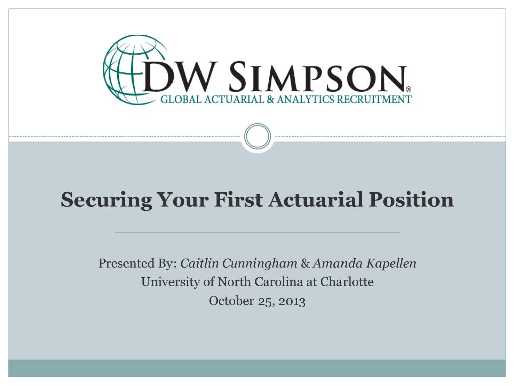 Securing Your First Actuarial Position ________________________________________________________ Presented By: Caitlin Cunningham & Amanda Kapellen University of North Carolina at Charlotte October 25, 2013. Discussion Overview. About DW Simpson Being an Actuary
