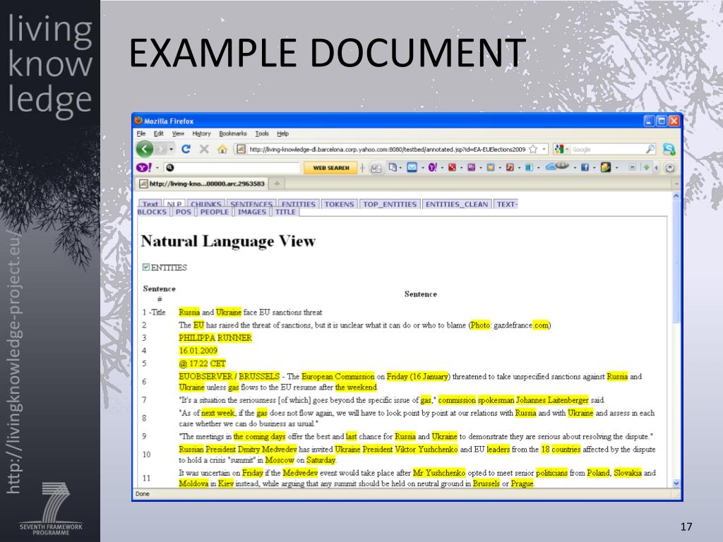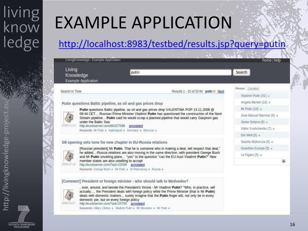 EXAMPLE APPLICATION http://localhost:8983/testbed/results.jsp?query=putin 16