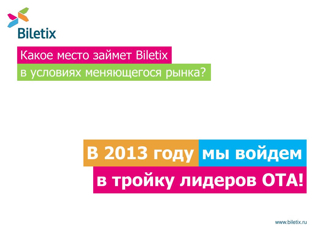 Какое место займет Biletix в условиях меняющегося рынка? В 2013 году мы войдем в тройку лидеровOTA! www.biletix.ru