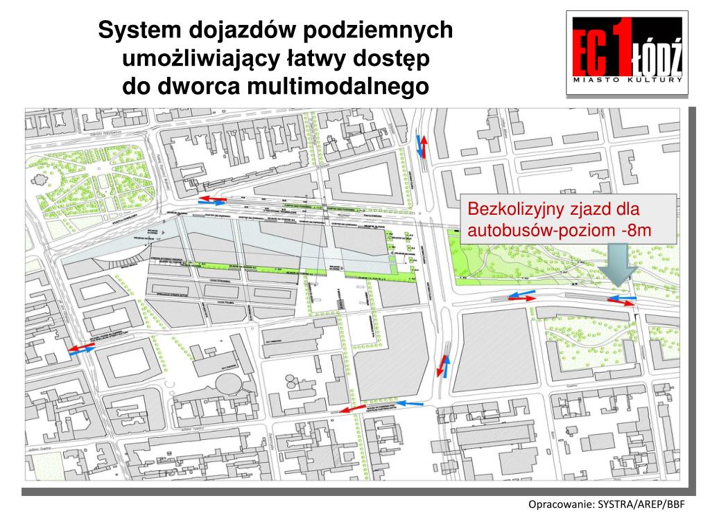 System dojazdów podziemnych umożliwiający łatwy dostęp do dworca multimodalnego Bezkolizyjny zjazd dla autobusów-poziom -8m Opracowanie: SYSTRA/AREP/BBF