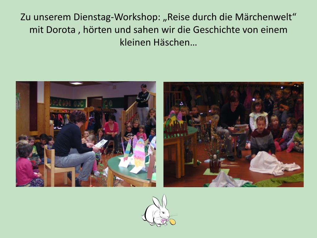 Zu unserem Dienstag-Workshop: „Reise durch die Märchenwelt“ mit Dorota , hörten und sahen wir die Geschichte von einem kleinen Häschen…