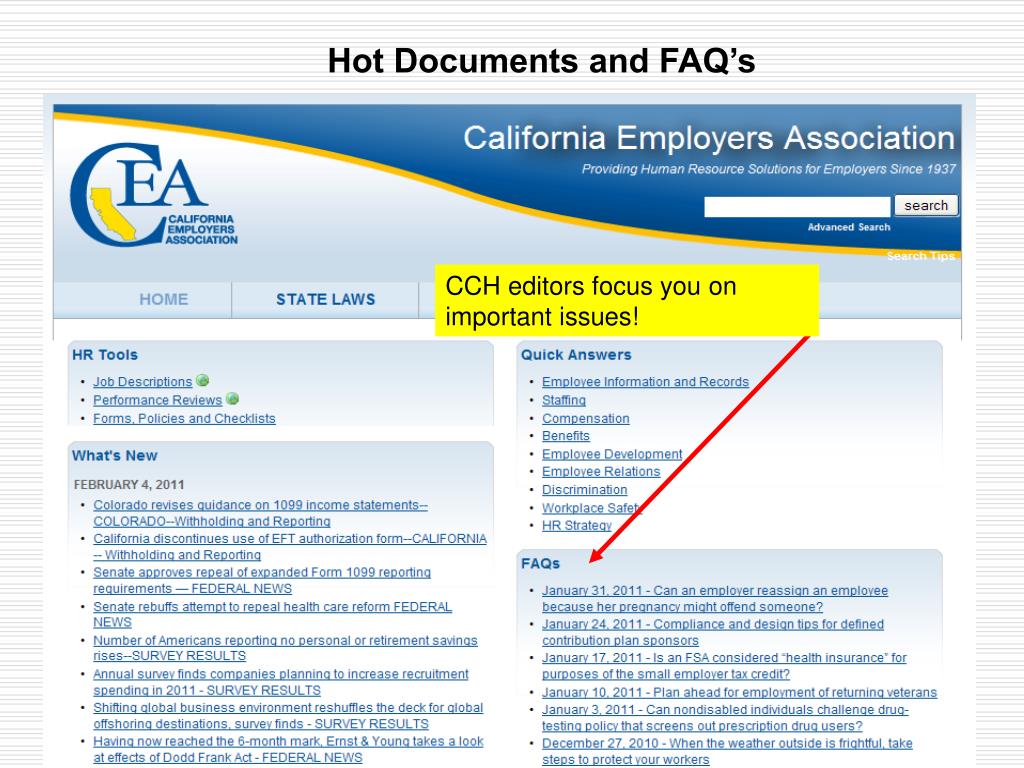 Hot Documents and FAQ’s CCH editors focus you on important issues!