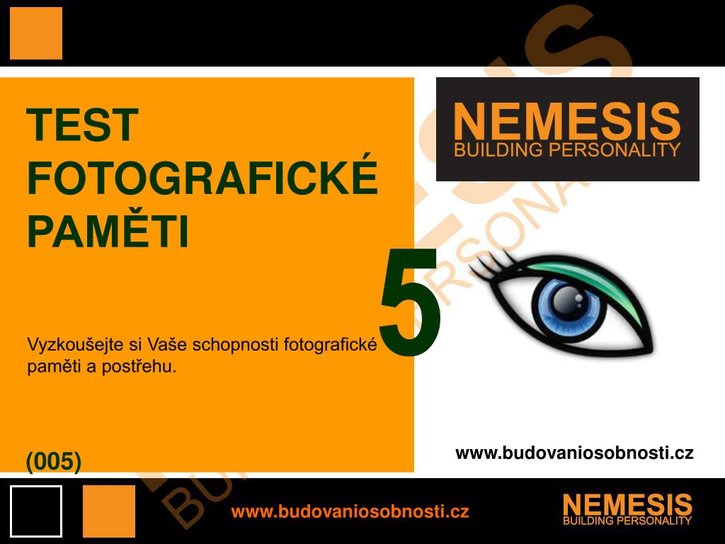 TEST FOTOGRAFICKÉ PAMĚTI (005) 5 Vyzkoušejte si Vaše schopnosti fotografické paměti a postřehu. www.budovaniosobnosti.cz www.budovaniosobnosti.cz